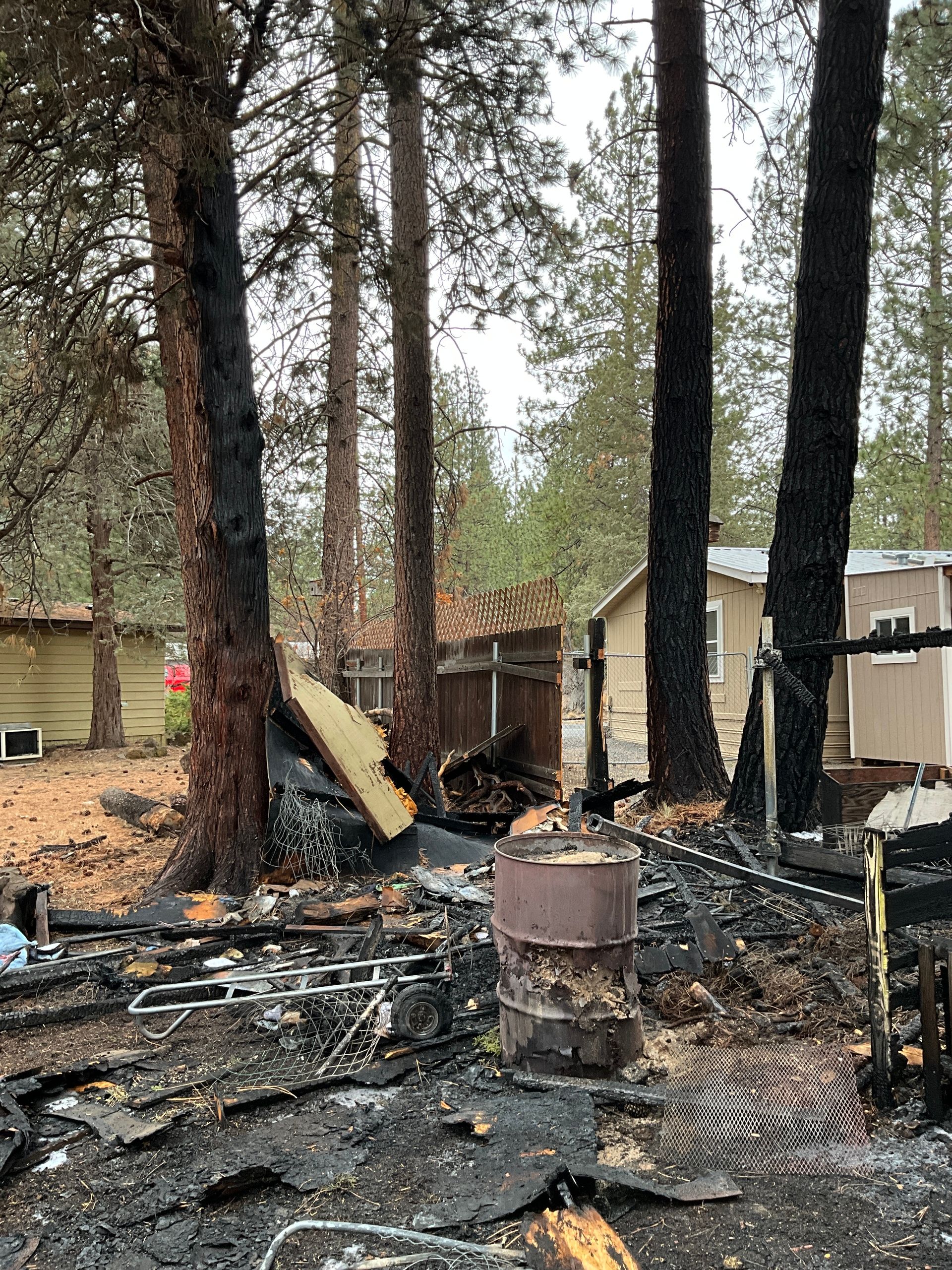 A shed fire broke out late Tuesday morning, December 4th, in a southwest Bend neighborhood off Chuckanut Drive. A quick-thinking neighbor spotted the blaze and alerted the nearby homeowner while another called 911. Bend Fire & Rescue arrived swiftly, containing the fully involved shed fire before it could spread to nearby homes. The fire destroyed the garden shed, scorched a property fence, and singed several large pine trees. Investigators determined the cause to be accidental—hot ashes from a wood stove, placed on dry compost too close to the shed, ignited the blaze. Damages are estimated at $20,000.